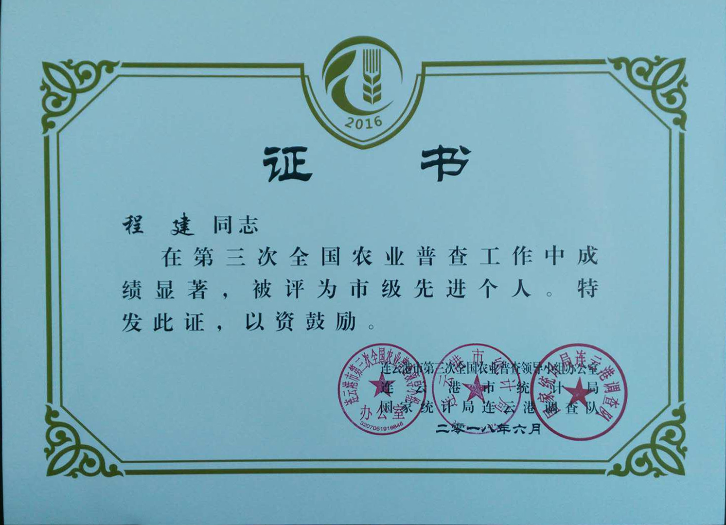 近日,從連云港市統(tǒng)計局傳來喜訊,東辛農(nóng)場合興社區(qū)居委會干事程建同志被市統(tǒng)計局授予“第三次全國農(nóng)業(yè)普查先進(jìn)個人”榮譽稱號。