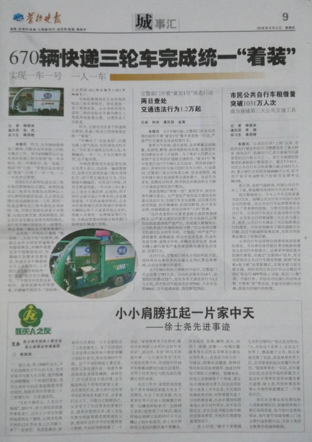 8月2日,《蒼梧晚報(bào)》刊登了《小小肩膀扛起一片家中天》的新聞報(bào)道,主要講述了東辛農(nóng)場(chǎng)西洋社區(qū)居委會(huì)居民徐士堯用稚嫩的肩膀撐起了一個(gè)坍塌的家庭,用自身樸實(shí)的故事溫暖著周?chē)用竦南冗M(jìn)事跡。