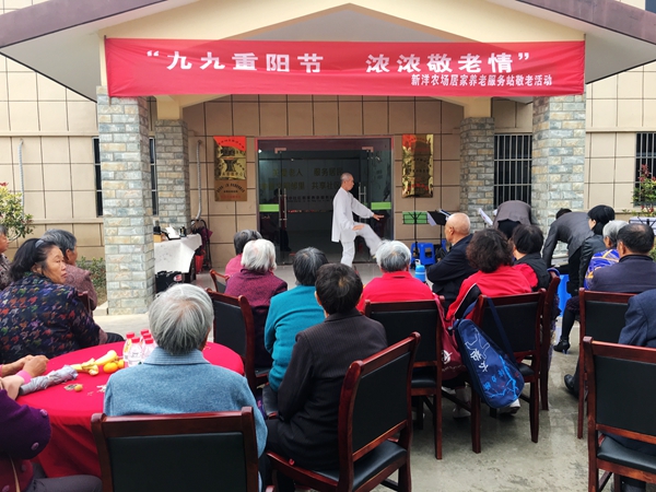 活動(dòng)現(xiàn)場,老年文藝骨干們給我們準(zhǔn)備了精彩的表演,太極拳、柔力球充分展現(xiàn)了老年人飽滿的精氣神,民間傳統(tǒng)文化《送夫》、《鵝毛大雪》等淮劇表演,贏得掌聲不斷,服務(wù)站工作人員的詩詞朗誦《歲歲重陽 今又重陽》飽含了尊老愛老之情,駐場部隊(duì)的“三句半”表演更是將活動(dòng)推向了高潮,最后,活動(dòng)在歡快的五行健身操中落下帷幕。
