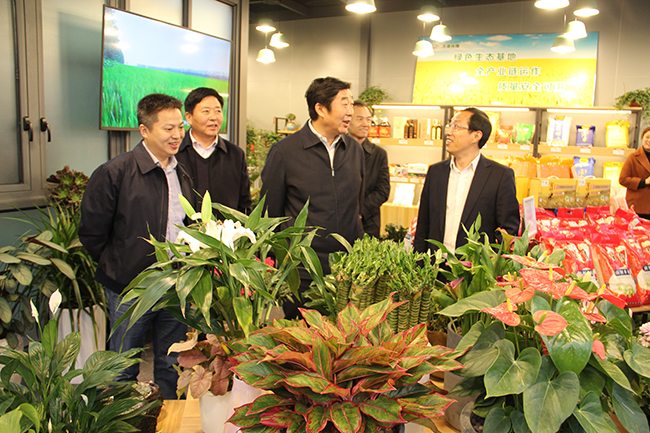 胡兆輝一行先后考察了蘇墾生態(tài)農(nóng)產(chǎn)品直銷中心和蘇墾知青之家。在直銷中心門店,胡兆輝詳細(xì)詢問了蘇墾大米、一宅一花經(jīng)營情況;在知青之家,與當(dāng)年的下放知青親切交談,向他們通報(bào)第二故鄉(xiāng)的發(fā)展情況。胡兆輝現(xiàn)場(chǎng)辦公,對(duì)金橋公司與蘇墾米業(yè)、蘇墾園藝緊密合作圍繞農(nóng)墾主業(yè)拓展經(jīng)營提出指導(dǎo)協(xié)調(diào)意見。