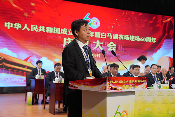 胡兆輝在講話中指出,建場60年來,一代又一代白馬湖人傳承和弘揚(yáng)“艱苦奮斗、勇于奉獻(xiàn)、開拓創(chuàng)新”的農(nóng)墾精神,櫛風(fēng)沐雨、薪火相傳,形成了以種植業(yè)為基礎(chǔ),種子為龍頭,育繁推、產(chǎn)加銷一體化經(jīng)營、綠化林苗和水產(chǎn)養(yǎng)殖協(xié)同發(fā)展的現(xiàn)代農(nóng)業(yè)產(chǎn)業(yè)體系;實(shí)現(xiàn)了綜合實(shí)力和發(fā)展質(zhì)量穩(wěn)步提升,城鎮(zhèn)面貌和生態(tài)環(huán)境持續(xù)改善,公共服務(wù)和社會(huì)治理水平顯著提高,職工群眾生活質(zhì)量和幸福指數(shù)不斷攀升。