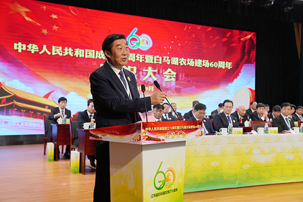 9月23日,在節(jié)日般的喜慶氛圍中,白馬湖農(nóng)場有限公司干部職工代表和特邀嘉賓共450人歡聚一堂召開慶祝大會(huì),共同慶祝中華人民共和國成立70周年暨白馬湖農(nóng)場建場60周年。集團(tuán)公司總經(jīng)理、蘇墾農(nóng)發(fā)董事長胡兆輝,淮安區(qū)委書記徐子佳出席并講話,白馬湖農(nóng)場公司黨委書記、董事長、總經(jīng)理姚春華致辭,黨委副書記韓正光主持大會(huì)。