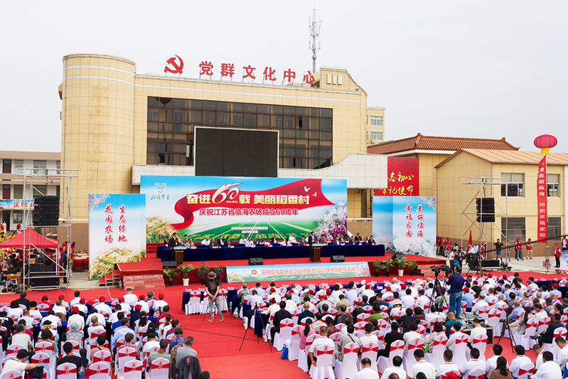斗轉星移,滄海桑田,追憶崢嶸歲月,敘說巨大發(fā)展,展望美好明天。在金秋送爽的豐收季節(jié)里,臨海農(nóng)場公司幸福歡欣地迎來了六十華誕。9月22日,鏗鏘鑼鼓歡迎四方賓朋,裝扮一新的街道張燈結彩、人頭攢動,洋溢著節(jié)日的喜慶氣氛,江蘇省臨海農(nóng)場公司建場60周年慶?;顒釉邳h群文化中心廣場隆重舉行。江蘇省農(nóng)墾集團黨委副書記、總經(jīng)理胡兆輝,中共射陽縣委副書記、射陽縣人民政府縣長吳岡玉,南京林業(yè)大學副校長張金池、江蘇省沿海開發(fā)集團總經(jīng)理周金陽,省內(nèi)外友好單位、集團相關部門領導、地方政府相關部門負責人、原農(nóng)場黨政主要領導、農(nóng)墾兄弟單位領導、校企合作高校領導、農(nóng)場籍知名人士、離退休老同志代表、農(nóng)場知青代表、農(nóng)場公司黨委領導班子成員和職工居民代表700多人歡聚一堂,共同慶祝臨海農(nóng)場公司建場60周年。