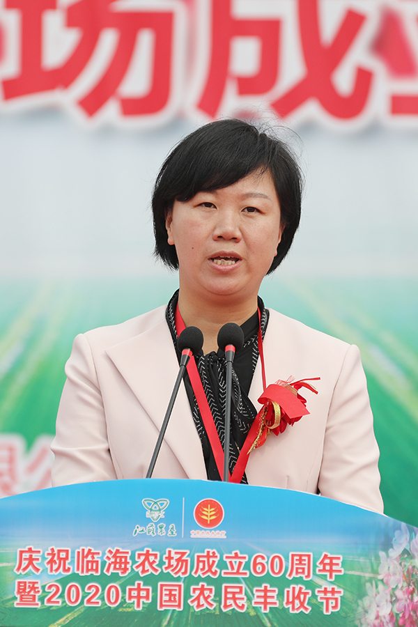 江蘇省農(nóng)墾集團公司黨委副書記、總經(jīng)理胡兆輝代表江蘇省農(nóng)墾集團公司黨委向臨海農(nóng)場公司建場60周年表示熱烈祝賀。他簡述了近年來江蘇農(nóng)墾的發(fā)展理念和取得全國農(nóng)墾利潤總額第一名的佳績,高度贊揚了臨海農(nóng)場公司建場六十周年來各項事業(yè)的發(fā)展成就。胡兆輝指出,江蘇農(nóng)墾將以“三個一”體系建設為抓手,在深化改革中不斷發(fā)展,努力打造中國現(xiàn)代農(nóng)業(yè)航母的“江蘇號”。他祝愿臨海明天更加燦爛輝煌,希望臨海人進一步解放思想,弘揚農(nóng)墾精神、社會主義先進文化,加強與地方合作,科學管理、創(chuàng)新發(fā)展、團結拼搏,為建設“經(jīng)濟強、產(chǎn)業(yè)優(yōu)、職工富、生態(tài)美、農(nóng)場興”的新農(nóng)場不懈奮斗,為江蘇農(nóng)墾建設發(fā)展做出更大貢獻!