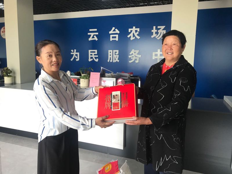 社區(qū)愛心志愿隊對困難家庭進(jìn)行走訪慰問,分別為他們送上米面、油、月餅等慰問品,并與他們深入交談,了解他們的身體狀況、家庭情況以及存在的實際困難。不僅為困難家庭帶去了滿滿的中秋祝福,同時也帶去了農(nóng)場公司黨委的關(guān)心,更是精神上的慰藉,希望他們度過一個歡樂、祥和的中秋佳節(jié)。