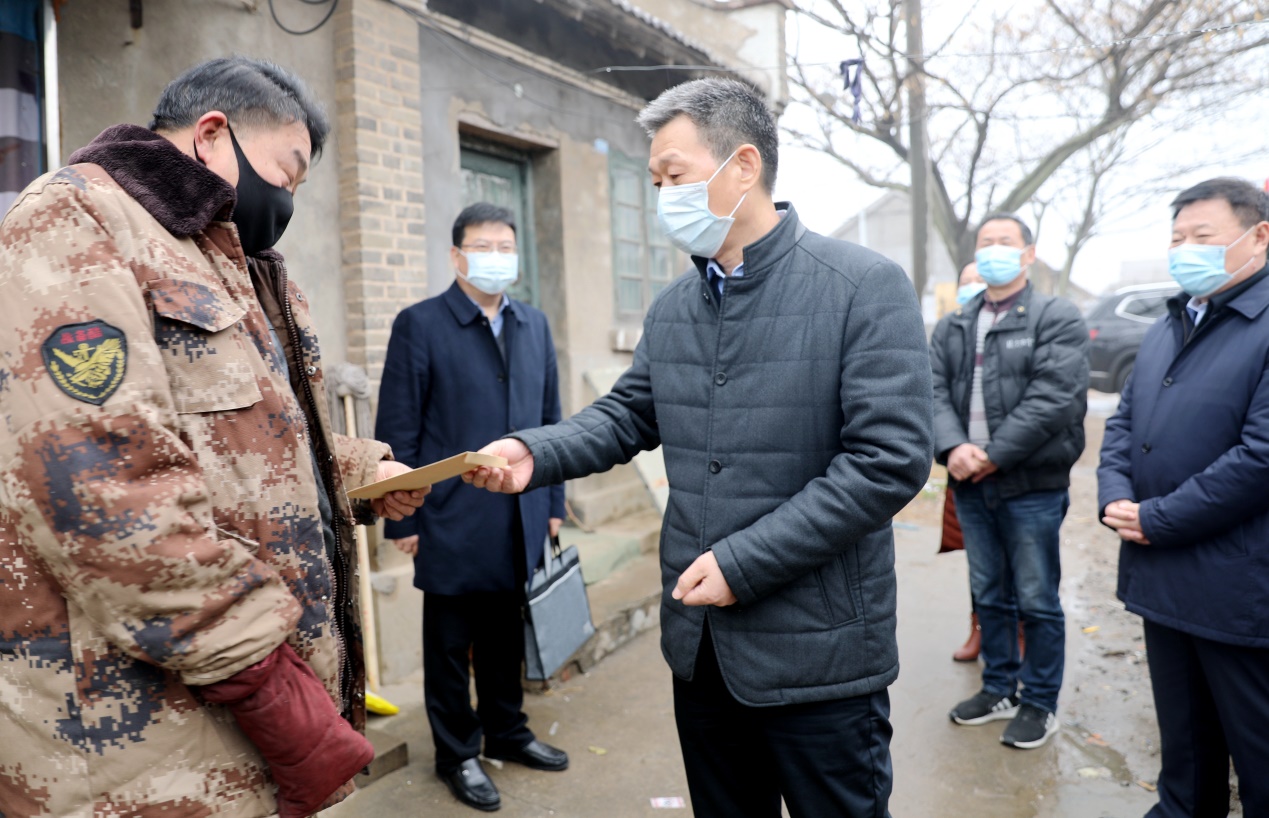 在72歲的退役軍人張獻(xiàn)珠家,姚準(zhǔn)明一邊遞上慰問(wèn)金,一邊與其親切交談,并仔細(xì)地詢(xún)問(wèn)著他的生活情況、健康狀況,深情地叮囑其家人:“你們有困難不要怕,我們會(huì)盡力幫助你們渡過(guò)難關(guān)的,你們一定要照顧好自己的身體,好好地生活,有什么困難和需要就向組織反映。(韓先春)