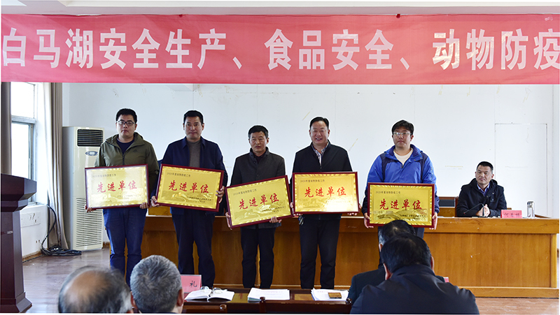 會(huì)上,何善棟作安全系列工作報(bào)告,總結(jié)或通報(bào)2020年安全生產(chǎn)、食品安全和動(dòng)物防疫工作情況,布置或解讀2021年安全生產(chǎn)、食品安全和動(dòng)物防疫工作任務(wù)或要點(diǎn)。四個(gè)單位負(fù)責(zé)同志代表各單位向韓樹明遞交安全系列工作責(zé)任狀,進(jìn)一步強(qiáng)化了安全生產(chǎn)目標(biāo)管理、食品安全、特種設(shè)備安全、消防安全、動(dòng)物防疫等工作的責(zé)任。接著,韓躍武宣讀了對2020年度食品安全工作、動(dòng)物防疫工作先進(jìn)單位及安全生產(chǎn)、食品安全先進(jìn)個(gè)人進(jìn)行表彰的相關(guān)決定并由在主席臺(tái)就座的各位領(lǐng)導(dǎo)為他們一一頒獎(jiǎng)。