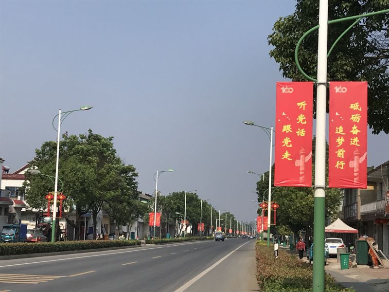 尤其是中國結(jié)景觀燈,主體材質(zhì)為紅色吸塑,LED發(fā)光,單個高2.5米,寬1.3米,兩個一組,分別安裝在路燈桿兩側(cè)高4米的位置,照明和美觀效果兼?zhèn)?,確實讓人眼前一亮。而且中國結(jié)寓意深刻,暗含了中國傳統(tǒng)厚重的吉祥文化,表達著熱烈濃郁的美好祝福,融入了中華民族對生命的認(rèn)知,對生活的體驗,對未來的期許。目前已安裝好的“中國結(jié)”和道旗及宣傳標(biāo)語共近500組。這部分主干道上的燈桿換上“新裝”以后,白天,宣傳標(biāo)語整齊喜慶、入腦入心,夜晚,中國結(jié)景觀燈和路燈交相輝映,營造了濃郁的喜慶氛圍,吸引了不少居民駐足拍照留念,得到了大家的一致好評。