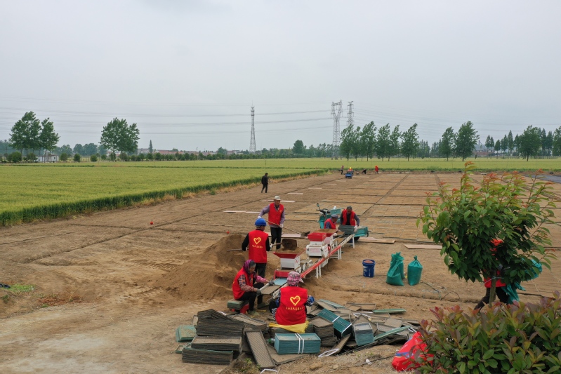 5月10日,寶應湖農場五七大隊田間,10名志愿服務者正在如火如荼地進行流水線育秧。