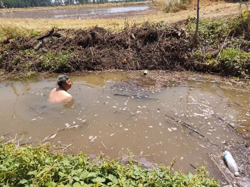 自十二隊(duì)收割以來,王國來要在田頭,查收割損失率,看秸稈留茬高度;要在場(chǎng)頭,查登場(chǎng)小麥水分,看小麥籽粒飽滿度,協(xié)調(diào)糧食堆放、調(diào)運(yùn);要在路口,指揮拖拉機(jī)旋田作業(yè);要心系秧苗……6月8日,十二隊(duì)中閘嚴(yán)重缺水,經(jīng)查是排水渠堵塞。排水渠里腐爛的雜草漾著白沫,蚊蟲嗡嗡亂撞,王國來毫不猶豫跳進(jìn)了水中。一遍、二遍,他一次次潛入水中,經(jīng)過1個(gè)多小時(shí)腳挑手掏,疏通堵塞,恢復(fù)排水順暢。