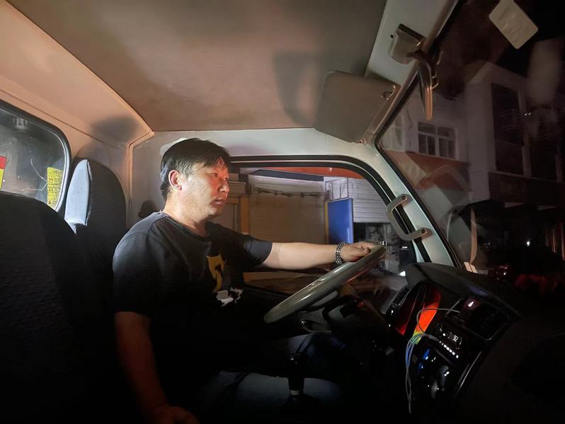 一個(gè)點(diǎn)一個(gè)點(diǎn)跑,一桶一桶裝,一車一車卸。戴玉剛對(duì)每個(gè)清運(yùn)點(diǎn)的位置熟悉得不能再熟悉,一天作業(yè)下來(lái)能跑40多公里。當(dāng)車?yán)锢幚硗戤?,他們又開(kāi)始洗車刷車……等到都弄干凈了才回家吃點(diǎn)東西,再睡上一覺(jué)。