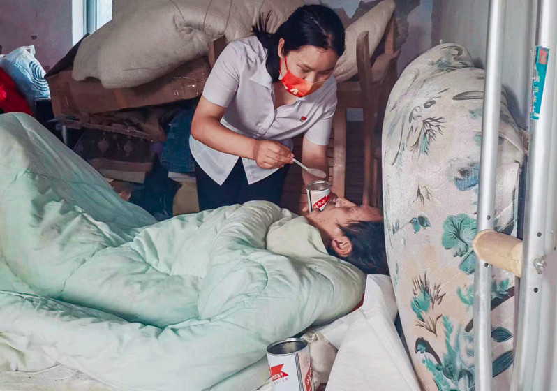 云臺(tái)農(nóng)場(chǎng)張圩居委會(huì)所轄小糧地居民點(diǎn),地理位置偏僻,是個(gè)只有5 戶人家的待撤并村莊。2022年8月9日,在“四個(gè)百”活動(dòng)日常走訪中,當(dāng)居委會(huì)走訪到小糧地居民點(diǎn)曹子牛家時(shí),發(fā)現(xiàn)昏暗的房間內(nèi)陣陣異味撲鼻而來(lái)。獨(dú)居在此的居民曹子牛,因起夜從床上不慎跌落在地,造成意識(shí)模糊講不出話來(lái),大小便失禁,生活無(wú)法自理,成了一名“失能人”。作為居委會(huì)的幫扶對(duì)象,曹子牛一直是村子里讓人頭疼的“老大難”。年輕時(shí)候的曹子牛常年游手好閑、酗酒成性,喝多了就家暴妻子孩子,2010年、2018年,他先后兩次因?yàn)榫岂{摔傷,導(dǎo)致左腿粉碎性骨折、腰部受傷,妻子頭部嚴(yán)重受傷。厄運(yùn)接踵而至,讓妻兒無(wú)法忍耐,先后離開(kāi)了家。由于他平日的言行,加之親屬能力有限無(wú)人愿意照料他,這給張圩居委會(huì)黨支部書記徐洪敏出了一道大難題,這燙手的山芋到手了就沒(méi)有丟掉的道理,徐書記沒(méi)有絲毫的猶豫,她立即成立了以她和居委會(huì)黨支部委員段萬(wàn)江同志、小糧地轄區(qū)網(wǎng)格單元長(zhǎng)顧林國(guó)同志為成員的專項(xiàng)幫扶小組,第一時(shí)間為曹子牛送去了米、面、水、雞蛋、八寶粥、隔尿墊、尿不濕等食物和生活必需品,并看守照料曹子牛。照料這樣的失能人難度可想而知,而這位90后女書記愿意帶著大家干這種又臟又累伺候人的活,更是難以想象!面對(duì)滿屋的異味,她連眉也沒(méi)皺一下,不嫌臟、不怕累,帶領(lǐng)幫扶小組上前給曹子牛喂水、喂藥、喂飯,處理他的大小便,換洗床鋪,打掃房間,真正將群眾視為自己的親人去照料,去愛(ài)護(hù)。照料曹子牛生活的同時(shí),她也沒(méi)有停止為曹子牛爭(zhēng)取援助的腳步。她積極聯(lián)合轄區(qū)派出所和有關(guān)部門,想方設(shè)法聯(lián)系他的親屬,苦口婆心的勸說(shuō),幫助協(xié)調(diào)矛盾糾紛,積極申請(qǐng)民政救助,聯(lián)系海州區(qū)殘聯(lián)上門幫助他評(píng)殘,為曹子牛申請(qǐng)重殘補(bǔ)助,讓曹子牛真真切切地感受到黨的關(guān)懷。