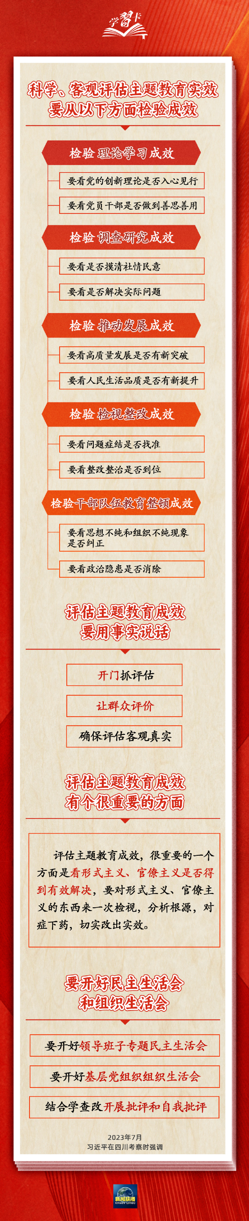 當前,全黨正在深入開展學習貫徹習近平新時代中國特色社會主義思想主題教育。7月25日至27日,習近平總書記在四川考察時強調(diào),第一批主題教育只剩下一個多月時間,各級黨組織要落實黨中央部署,善始善終、慎終如始,務(wù)求實效。要對主題教育的實效進行科學、客觀評估。