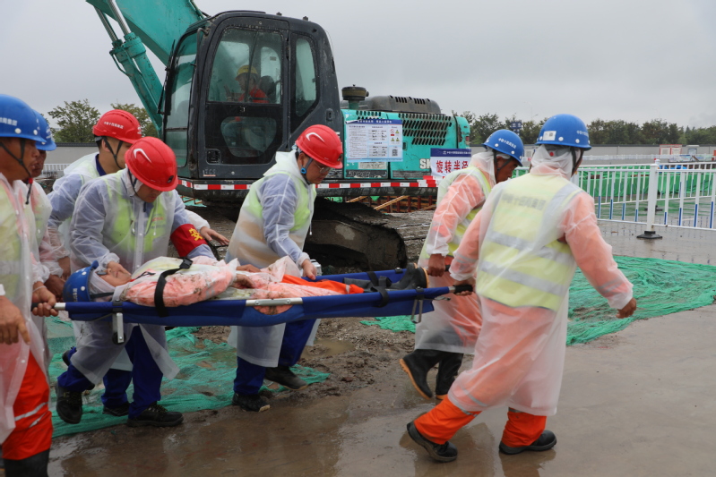 為進(jìn)一步樹牢安全發(fā)展理念、壓實(shí)安全生產(chǎn)責(zé)任、防范化解重大風(fēng)險、提升干部職工應(yīng)急處置能力,8月29日,江心沙攜手中鐵十四局海太長江隧道工程項(xiàng)目部開展防臺防汛綜合應(yīng)急演練。圖為筑堤防洪、醫(yī)療救助、緊急撤離等演練場景。