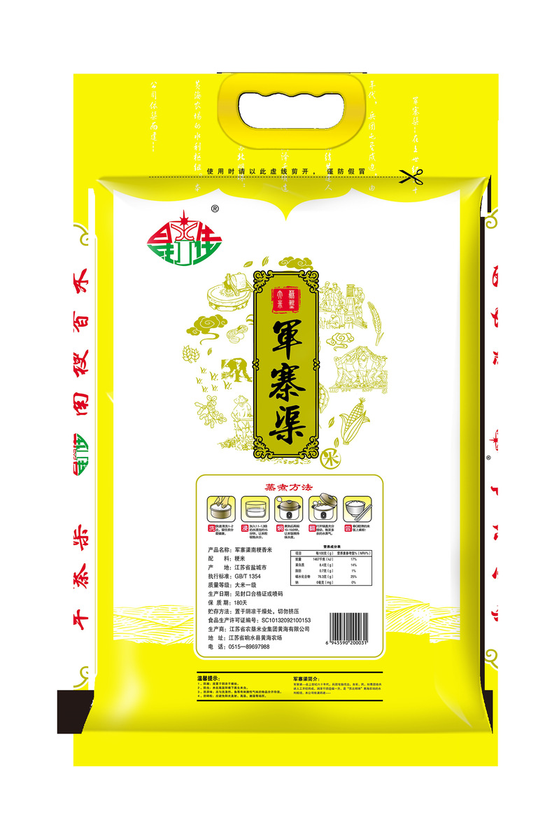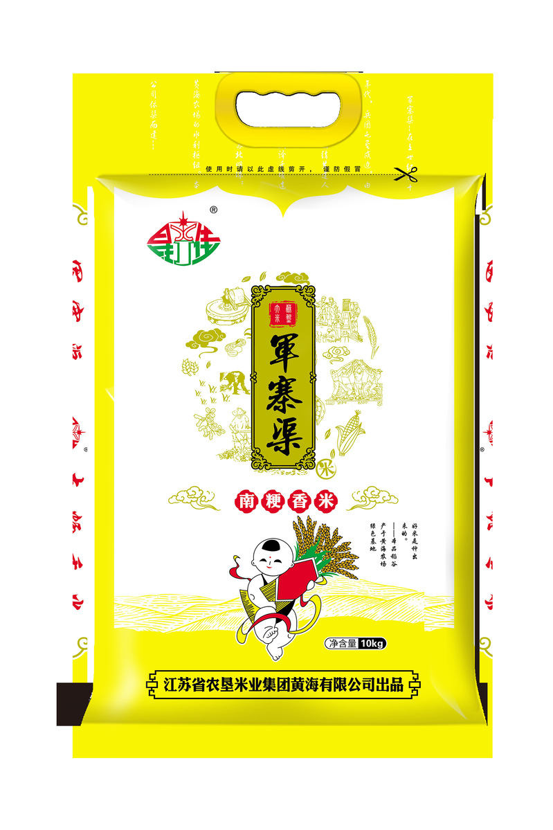 “軍寨渠”商標(biāo)于2018年注冊(cè),商品使用類(lèi)別為第30、31類(lèi)。圖案里的水果造型寓意“農(nóng)副產(chǎn)品”;“綠色”寓意與健康同伴相融,生生不息;“軍寨渠”是黃海農(nóng)場(chǎng)母親河,一直哺育著農(nóng)場(chǎng)遼闊的土地。上世紀(jì)60年代末開(kāi)挖軍寨渠時(shí),農(nóng)場(chǎng)職工和知青幾乎都參與到工程建設(shè)中,留下了關(guān)于軍寨渠建設(shè)的深刻記憶。以此為商標(biāo),也是紀(jì)念黃海這段“墾荒史”,傳承墾荒文化。