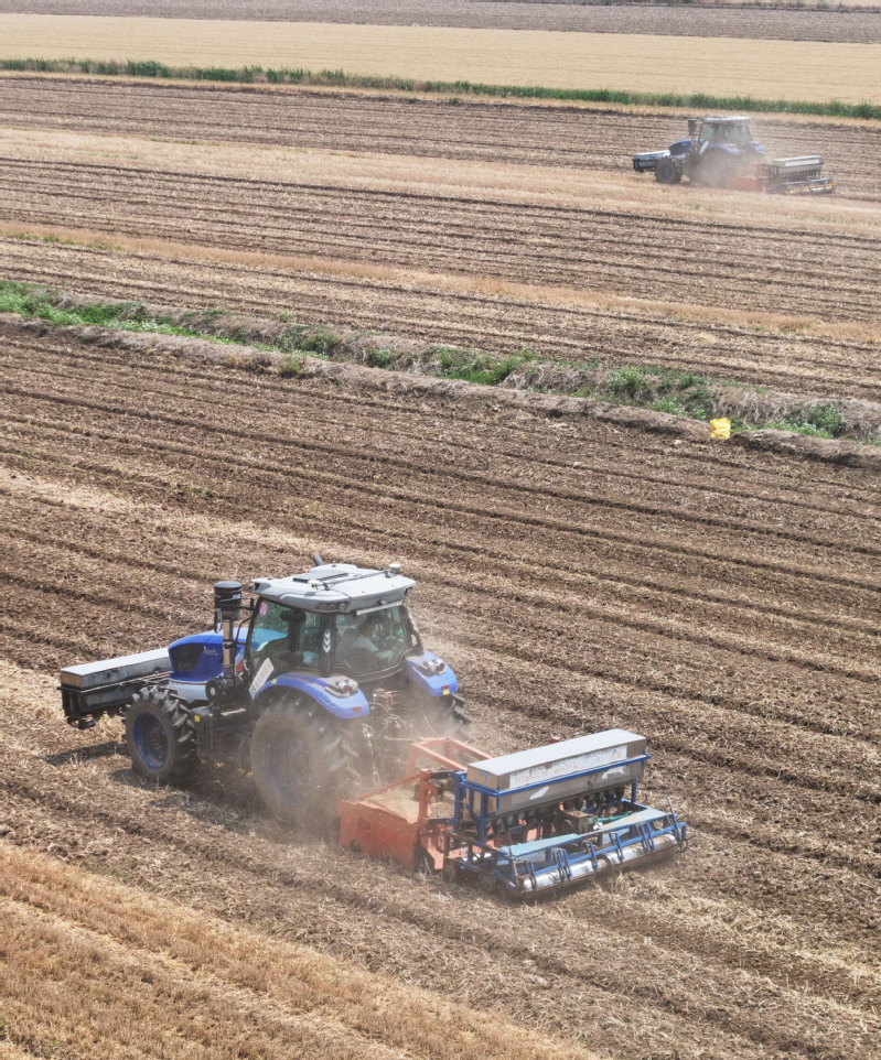 無(wú)人化、デジタル化、精密化に対応した九つの工程からなる直播き技術(shù)は、衛(wèi)星測(cè)位システム「北斗」を採(cǎi)用し、施肥、二軸式の深層耕起によるわらの均一混合と全量すき込み、整地、鎮(zhèn)圧、畝立て、適切な深さを保った広幅播種、覆土と溝切り、2次鎮(zhèn)圧、排水溝形成を一度に行うことができる。これにより、深く耕した土にわらをむらなく混ぜ合わせる質(zhì)の高い整地や、播種前後の2段階鎮(zhèn)圧と3次元デジタル位置制御による精密な種まきが実現(xiàn)する。耕起深度の不均一からくるわらの土壌還元不足、播種深さのばらつきといった各種難題も解消される。