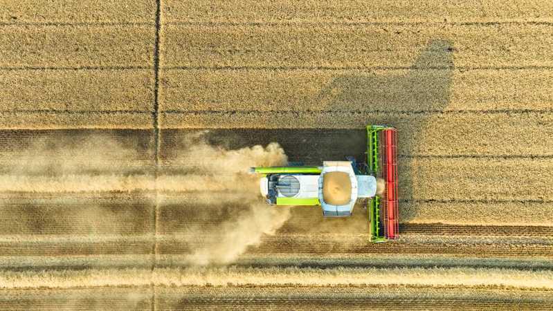 6月4日,江蘇省鹽城市射陽縣,江蘇農(nóng)墾新洋農(nóng)場組織大型聯(lián)合收割機(jī)搶收小麥,確保顆粒歸倉。