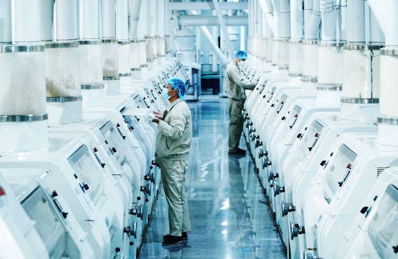 在明亮潔凈的全自動(dòng)化生產(chǎn)車間里,幾排面粉生產(chǎn)線在中控室監(jiān)控下穩(wěn)定地運(yùn)行著。該車間采用瑞士布勒集團(tuán)現(xiàn)代化制粉工藝和設(shè)備,面粉加工由中控室全程控制,實(shí)現(xiàn)了全自動(dòng)化生產(chǎn)。在廠區(qū)的谷物營(yíng)養(yǎng)研發(fā)中心內(nèi),研究人員目不轉(zhuǎn)睛地盯著實(shí)驗(yàn)設(shè)備,觀察各項(xiàng)實(shí)驗(yàn)參數(shù),為生產(chǎn)高品質(zhì)產(chǎn)品把好科研關(guān)。加拿大小麥粉、油餅預(yù)拌粉、麥芯小麥粉、富含膳食纖維的全谷物小麥粉……一批批營(yíng)養(yǎng)健康的食品,從古船車間走向百姓餐桌。