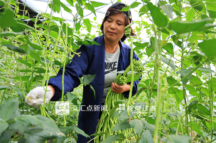 9月17日,連云港市海州區(qū)的江蘇農(nóng)墾崗埠農(nóng)場(chǎng),種植戶在溫室大棚里采收成熟的豇豆,準(zhǔn)備供應(yīng)市場(chǎng)銷售。徐衛(wèi) 攝 視覺(jué)江蘇網(wǎng)供圖