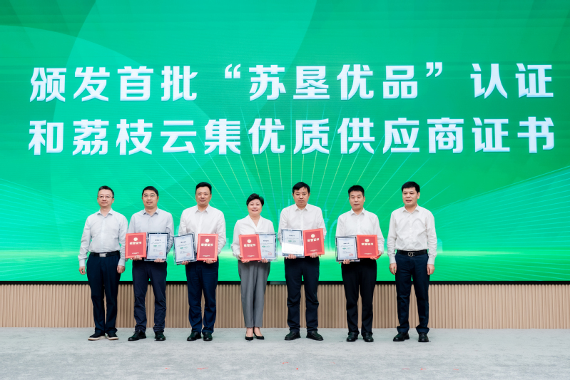 現(xiàn)場還舉行了“蘇墾優(yōu)品”認證證書及“荔枝云集優(yōu)質(zhì)供應(yīng)商”證書頒發(fā)儀式。江蘇省農(nóng)墾米業(yè)集團有限公司、蘇州蘇墾現(xiàn)代農(nóng)業(yè)發(fā)展有限公司、金太陽糧油股份有限公司、江蘇農(nóng)墾漁業(yè)科技有限公司、江蘇農(nóng)墾乳業(yè)科技有限公司五家企業(yè)獲得首批授權(quán)。