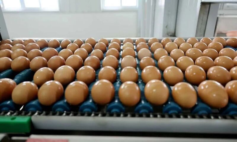 雞蛋的“出場(chǎng)儀式”同樣充滿科技感。它們從雞舍“出發(fā)”,經(jīng)中央集蛋流水線直達(dá)蛋庫(kù),進(jìn)入處理能力達(dá)每小時(shí)8萬(wàn)枚的全自動(dòng)分選線,依次完成清洗、烘干、紫外線殺菌、裂紋檢測(cè)、稱重分級(jí)、噴碼溯源……15道工序一氣呵成。不合格的蛋會(huì)被自動(dòng)剔除,合格的蛋則會(huì)被噴上獨(dú)一無(wú)二的“生日檔案”編碼,實(shí)現(xiàn)從養(yǎng)殖到餐桌的全程可追溯。