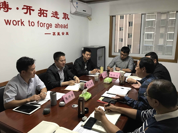 10月10日下午,集團(tuán)公司黨委委員、副總經(jīng)理仲小兵一行到蘇墾金屬調(diào)研指導(dǎo)工作,蘇墾金屬公司領(lǐng)導(dǎo)班子陪同。  仲小兵前往銷售網(wǎng)點(diǎn)、倉(cāng)儲(chǔ)公司實(shí)地考察了解公司的具體業(yè)務(wù)情況,并聽(tīng)取了蘇墾金屬前三季度經(jīng)營(yíng)