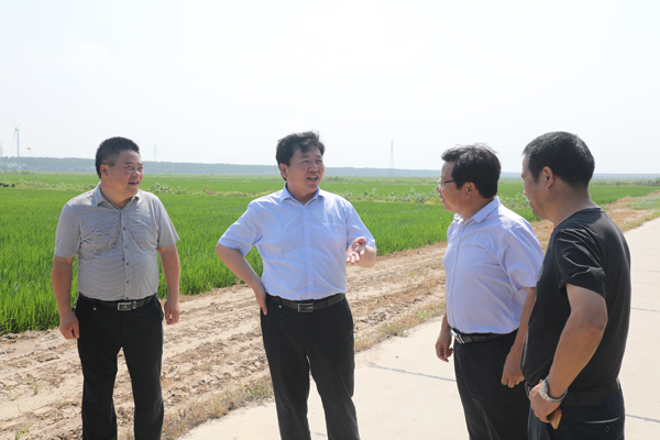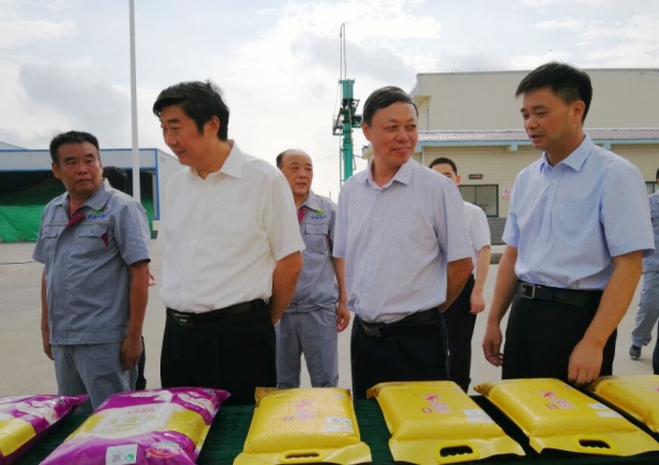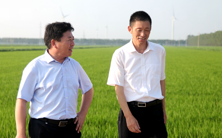 8月5日,集團公司黨委委員、蘇墾農(nóng)發(fā)股份公司總裁蘇志富一行到蘇墾農(nóng)發(fā)股份公司黃海分公司檢查指導(dǎo)工作。黃海分公司總經(jīng)理賀在銳、副總經(jīng)理沈進松陪同介紹情況?! √K志富冒著酷暑深入到黃海分公司水稻生產(chǎn)一