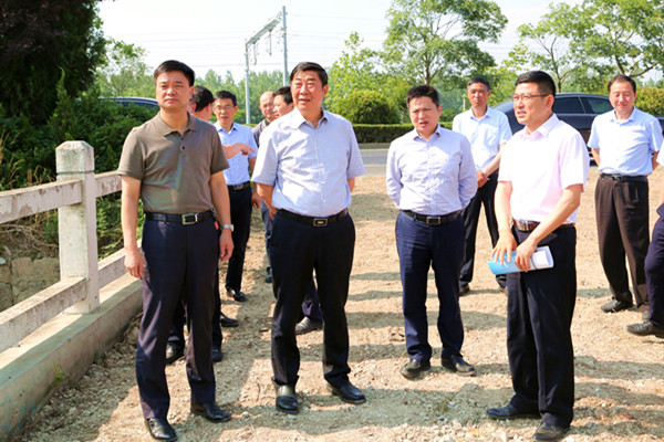 6月21日下午,省農(nóng)墾集團(tuán)公司總經(jīng)理胡兆輝、副總經(jīng)理姜建友、仲小兵及相關(guān)部室負(fù)責(zé)人到云臺(tái)專題調(diào)研環(huán)境污染防治工作。農(nóng)場公司黨委書記劉衛(wèi)華、黨委副書記宋光鋒陪同調(diào)研?! 『纵x一行來到云臺(tái)后直奔東池
