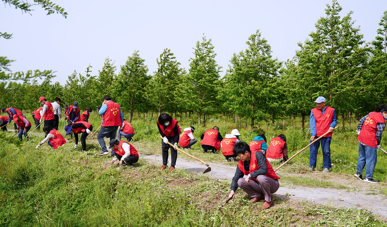火熱的太陽(yáng)下,志愿者們帶著鋤頭、鐮刀在“紅帆共建林”進(jìn)行鋤草,他們當(dāng)中有不少是公司的青年員工,志愿者們充分發(fā)揮了不怕臟、不怕累的精神,大家互相合作,齊心協(xié)力,經(jīng)過(guò)2個(gè)多小時(shí)的埋頭苦干,將共建林間溝邊雜草全部清理干凈。
