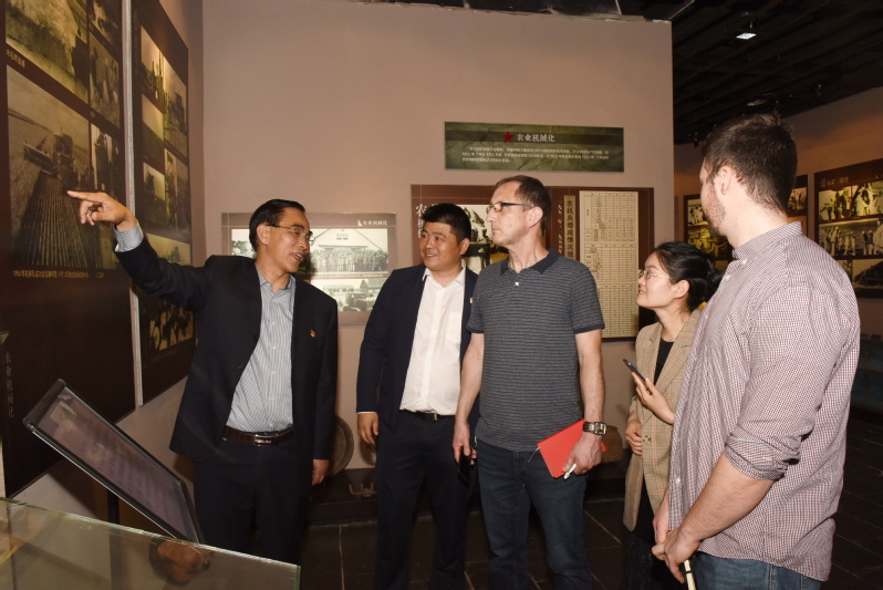 深入推進黨史學習教育走深走實,5月19日上午,我們在農建四師陳列館中看到,有2名中德作物生產與農業(yè)技術示范園的德國專家在翻譯的陪同下,也隨著黨支部20多名黨員一起,來到淮海農場紅色教育基地,體驗黨史學習和軍墾傳統(tǒng)文化實境教育之旅活動,感受時下火熱的“紅色教育”。