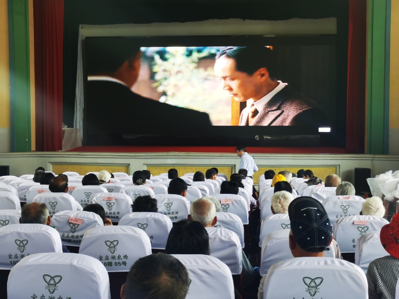 “下午來看看電影真好!禮堂裝修后干凈整潔,新安裝的電子屏播放效果好,聲音大,圖像清楚?!睂殤?yīng)湖農(nóng)場(chǎng)公司迎湖居委會(huì)85歲職工胥福宏開心地說。