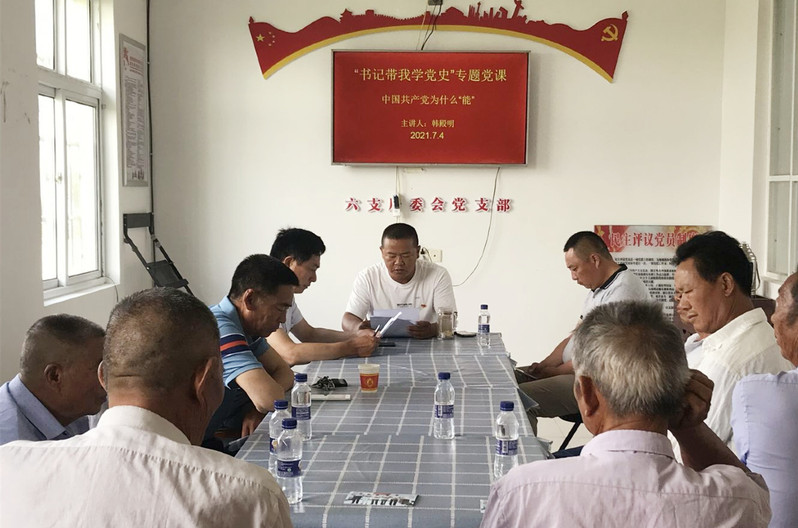 7月4日上午,白馬湖農(nóng)場六支居委會黨支部舉行“書記帶我學(xué)黨史”專題黨課活動,由黨支部書記韓殿明以“中國共產(chǎn)黨為什么‘能’”為主題,為支部黨員開講黨課。