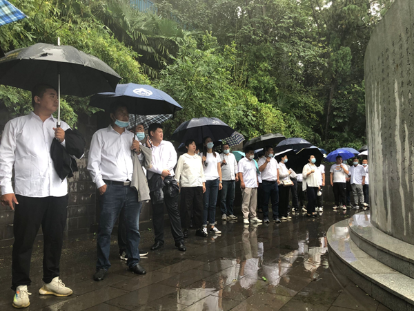 大家懷著崇敬的心情冒著小雨從山腳拾級而上,來到侵華日軍“侵華日軍盱城大屠殺遇難同胞紀(jì)念碑”前瞻仰,面對紀(jì)念碑集體默哀、深深鞠躬,以表達(dá)對遇難同胞們的沉痛哀思。
