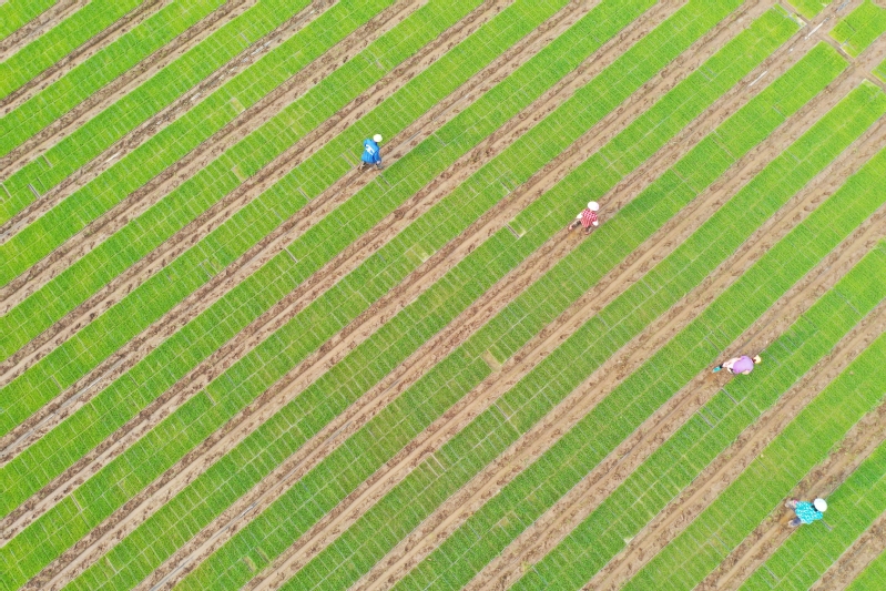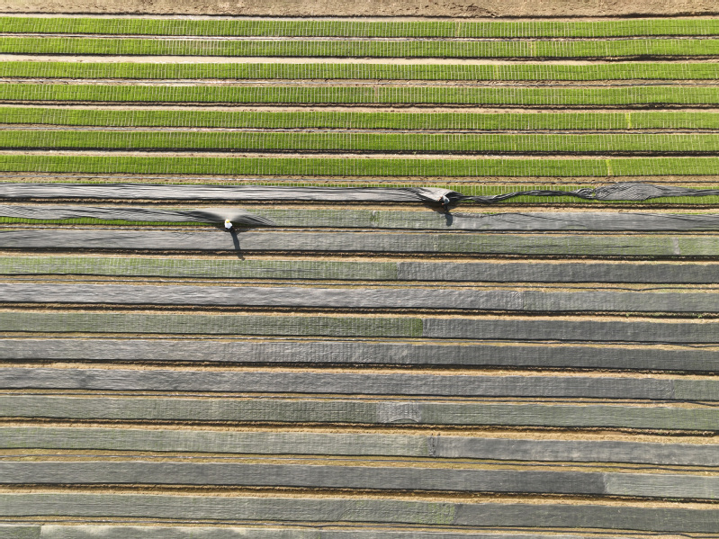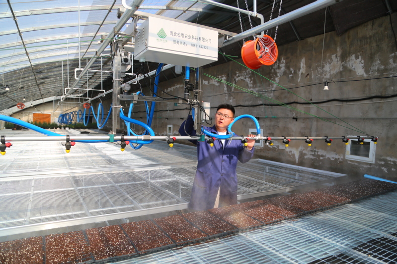 5月20日,崗埠農(nóng)場(chǎng)高效農(nóng)業(yè)示范園內(nèi),新改造的科技育苗大棚迎來(lái)首次育苗工作,工作人員在大棚里進(jìn)行剪枝、培土、擺盤(pán)、扦插、噴淋等作業(yè)。據(jù)悉,育苗大棚引進(jìn)物聯(lián)網(wǎng)智能控制系統(tǒng),實(shí)現(xiàn)對(duì)大棚內(nèi)溫、光、水、肥、空氣等環(huán)境因素的全面調(diào)節(jié)和優(yōu)化,有效提高育苗成活率,提升生產(chǎn)效率。