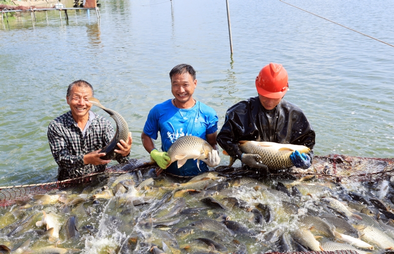 8月5日,崗埠農(nóng)場(chǎng)水產(chǎn)公司職工正在忙著捕魚銷售。崗埠農(nóng)場(chǎng)不斷優(yōu)化養(yǎng)殖結(jié)構(gòu),實(shí)行“輪捕輪放”“魚蝦混養(yǎng)”等新技術(shù)養(yǎng)殖,采取“一次放足,分批捕撈,捕大補(bǔ)小”放養(yǎng)模式,確保全年都有鮮活魚上市。該場(chǎng)水產(chǎn)養(yǎng)殖面積2500畝,主養(yǎng)鯉魚的池塘平均畝產(chǎn)“淮河牌”商品魚2200公斤,示范塘口最高單產(chǎn)達(dá)2600公手,最高畝效益5000元。
