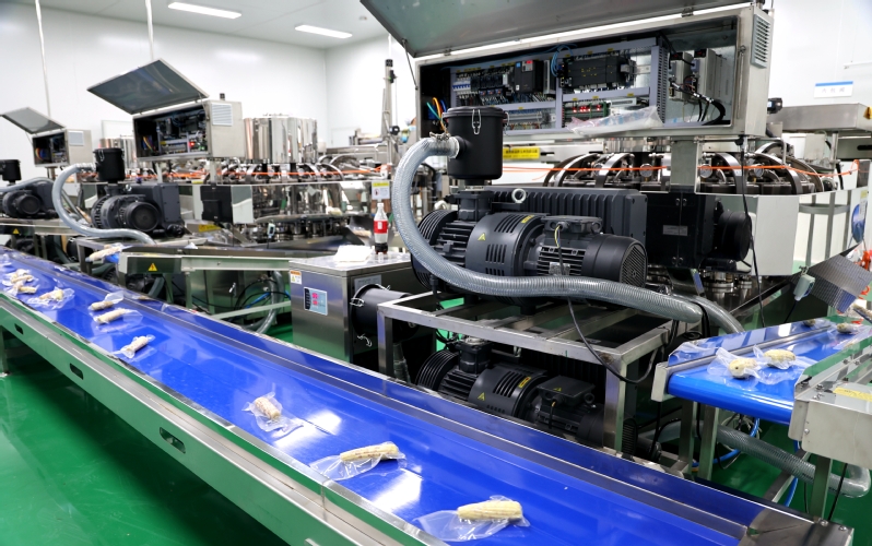 走進黃海農(nóng)場鮮食玉米生產(chǎn)加工車間,一片繁忙景象,一根根色澤鮮亮、顆粒飽滿的玉米“搭乘”全自動流水線,依次完成挑選、剝皮、360度清洗、真空鎖鮮、高溫蒸煮、風干、入庫冷藏等工序。經(jīng)過180個日夜的準備,黃海農(nóng)場鮮食玉米全自動生產(chǎn)線正式投產(chǎn)。