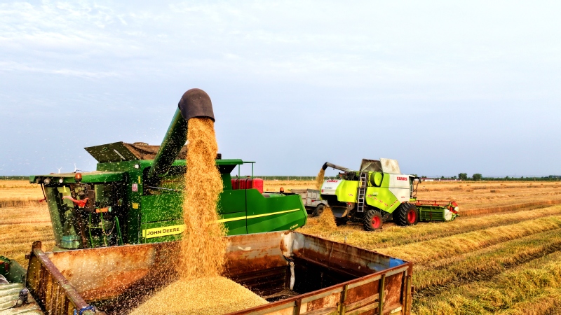 風(fēng)吹麥浪,滿地金黃。蘇墾農(nóng)發(fā)東壩頭分公司搶抓晴好天氣加緊搶收,數(shù)臺收割機馬力全開在田間來回穿梭,金黃的麥浪在轟鳴聲中起伏。