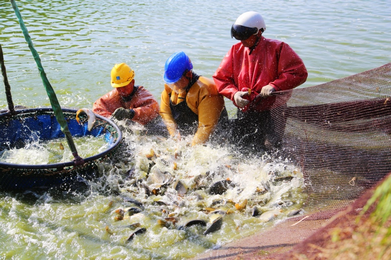 走進崗埠農(nóng)場北漁場,大型吊車配合捕魚工人們正在進行拉網(wǎng)作業(yè),收獲的鯉魚經(jīng)過分揀銷往湖北等地。連日來,水產(chǎn)市場行情走俏,崗埠農(nóng)場加緊捕撈各類水產(chǎn)品,切實滿足市場供應(yīng)。據(jù)悉,當日共捕撈鯉魚3萬余斤,銷售額近20萬元。